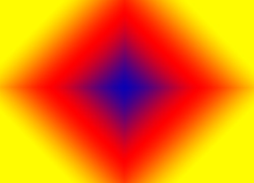 The diamond gradient is a smooth transition of color along a direction of increasing distance to the centre. But here L1-norm is used instead of L2-norm. To create the diamond gradient you must define at least two color stops. You can also set a centre point and a maximal distance.