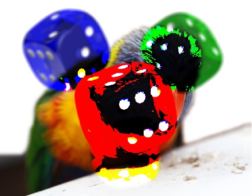 Adds the red, green and blue channel values of the source to the RGB values of the destination. If the resulting sum for a channel is 1 or greater, it receives a value of 1; if less than 1, a value of 0. Therefore, all blended pixels have red, green, and blue channel values of either 0 or 1. This changes all pixels to primary additive colors (red, green, or blue), white, or black.