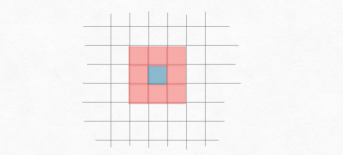 So, let’s start by defining the rules and neighbors. Each cell has 8 neighbors.
