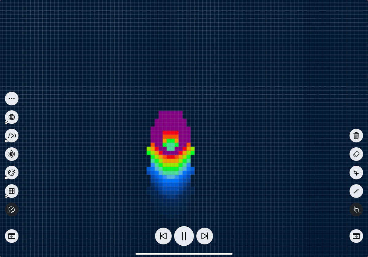 This is a cellular automaton — a mathematical model consisting of a grid of cells. Each cell can have one of several states (for example, “on” or “off”), and the state of each cell changes over time based on the states of its neighbors according to specific rules.