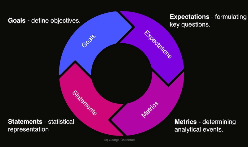 Metrics represent the foundational raw data from which we derive information. In this phase, we define the analytical events themselves and determine how they will be integrated into the code. These events ought to provide the minimum essential data required to address the questions posed in the preceding step. While executing this stage, the accent should be placed on identifying only the necessary data rather than collecting everything that might be potentially useful in the future.