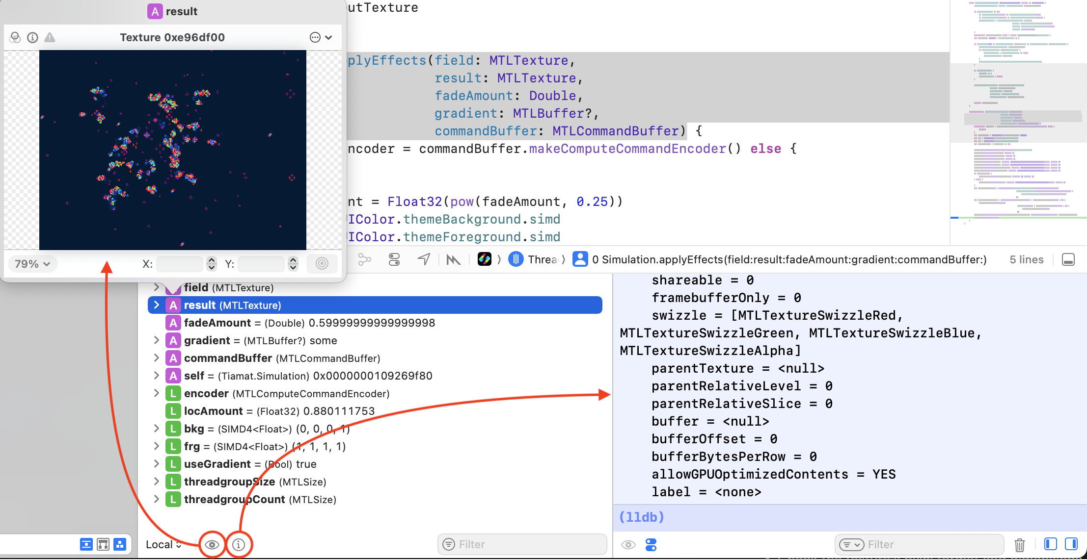 You can use Xcode's Frame Capture tool to inspect the contents of your buffers. I provided a brief explanation on how to use it in the previous episode, so in this episode, we'll focus on textures specifically.