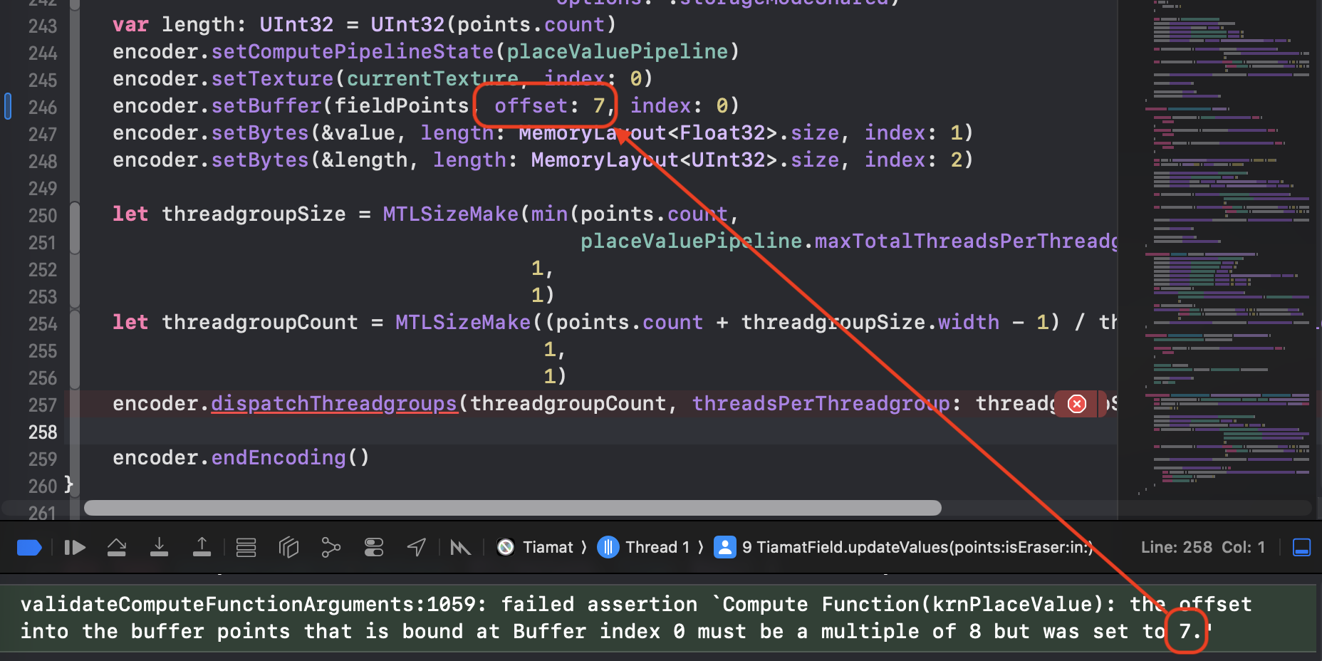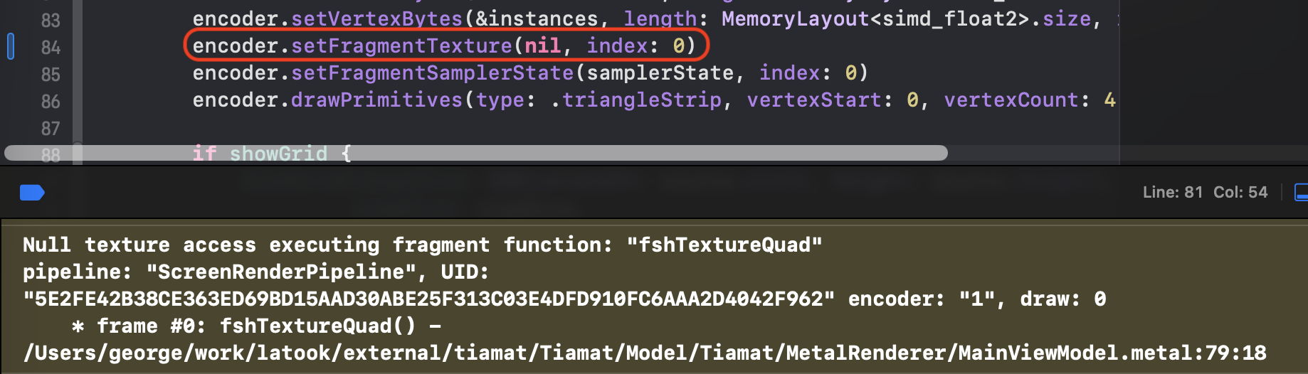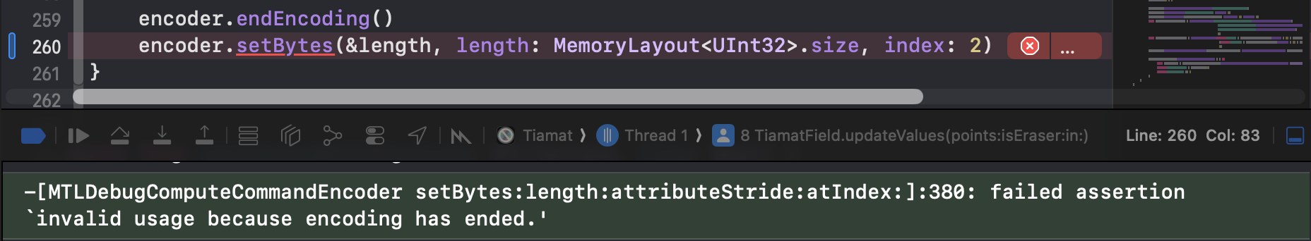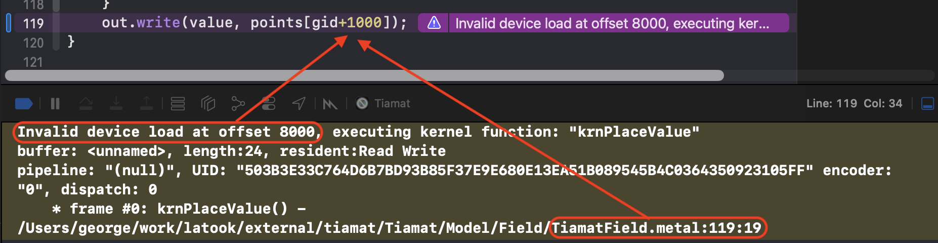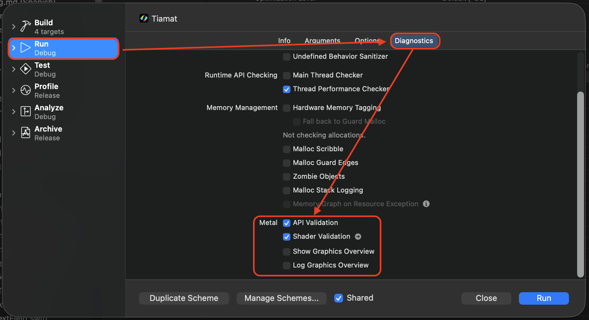 This validator checks for state and memory errors such as out-of-bounds access or dereferencing a nil texture. Because the GPU side is notoriously difficult to debug, the validator is invaluable. I highly recommend keeping it enabled whenever you're developing the Metal layer of your app.