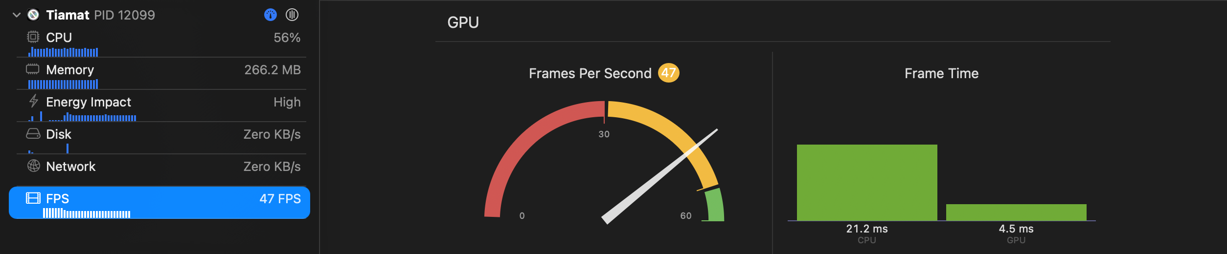 Although the tool looks primitive, it still provides helpful information: not just FPS, but also the CPU versus GPU time. That makes it easier to estimate where performance issues originate.